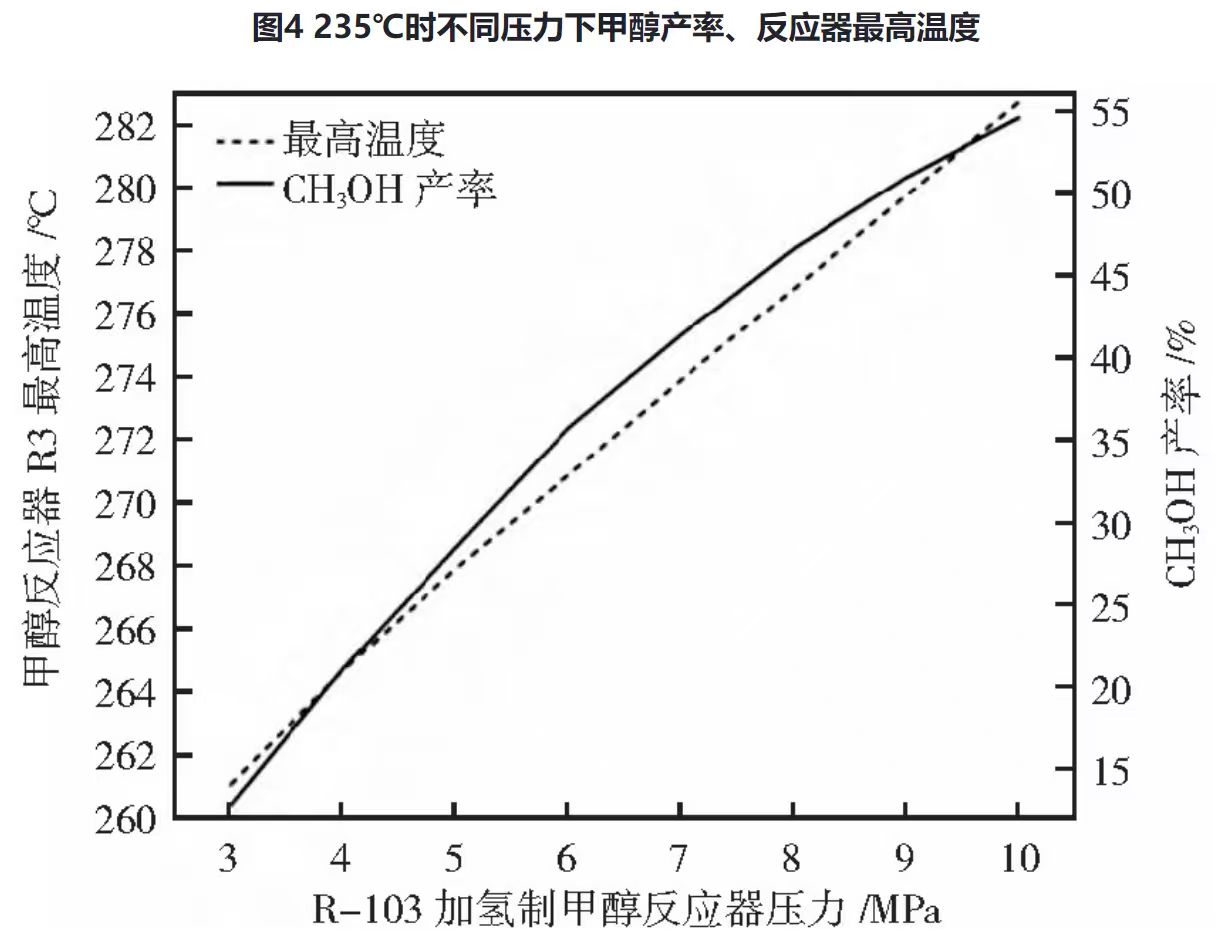 预重整反应器反应压力确定为2.7 MPa最佳;反应器进口温度最佳为235℃,压力确定为10 MPa。此情况下计算得ɑ1=55%。