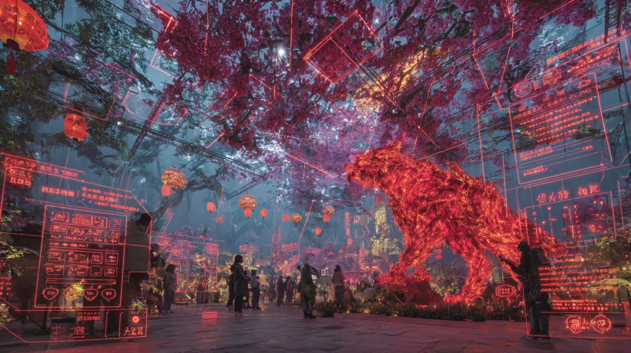 在春节等传统节日,广场化身为巨型AR竞技场,唤醒人们对旧世界的节日记忆。游客佩戴智能眼镜或借助广场AR投影,便能看见“年兽”在人群间灵活逃窜。大家组队参与,通过猜灯谜、诗词接龙等文化知识问答积累爆竹,用传统民俗智慧合力驱赶年兽,沉浸式重拾节日热闹与文化温度,让星际漂泊中的思乡情,在虚实交融的互动里,找到温暖归处 。