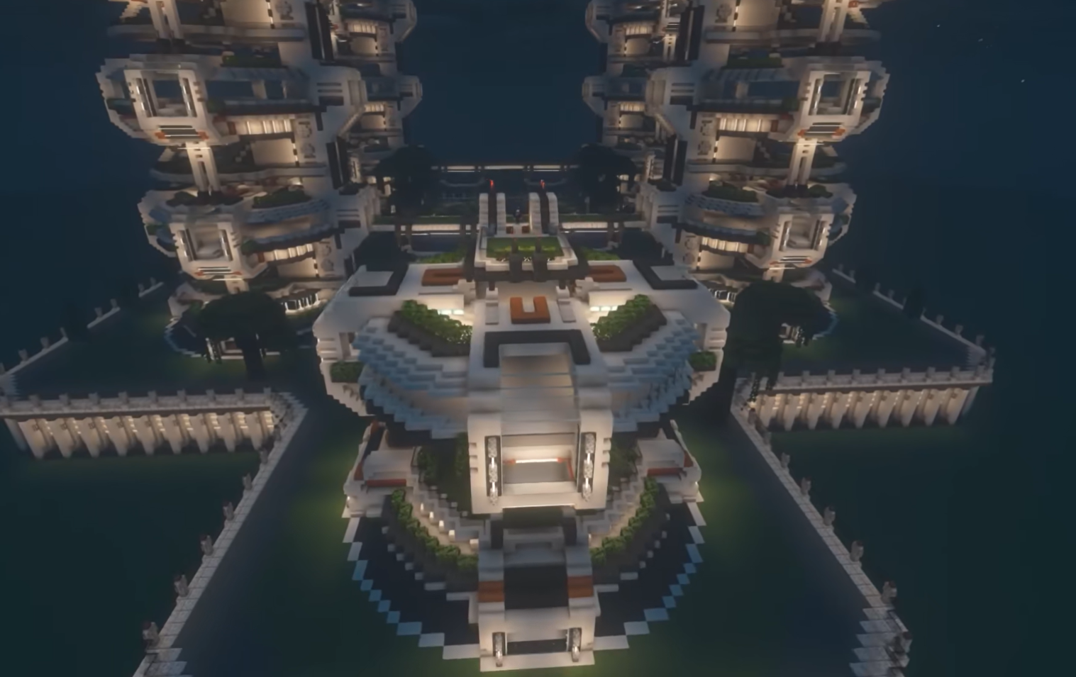 - 层级结构:每个中心圆盘上圆盘主体为二至三层住宅层,房屋样式根据圆盘主题设计,中心环绕公共功能区(宽 10 米),核心为中心主题建筑(多为双层)。住宅层顶部为私人花园层。在中心圆盘四周的小圆盘上仅有住宅层