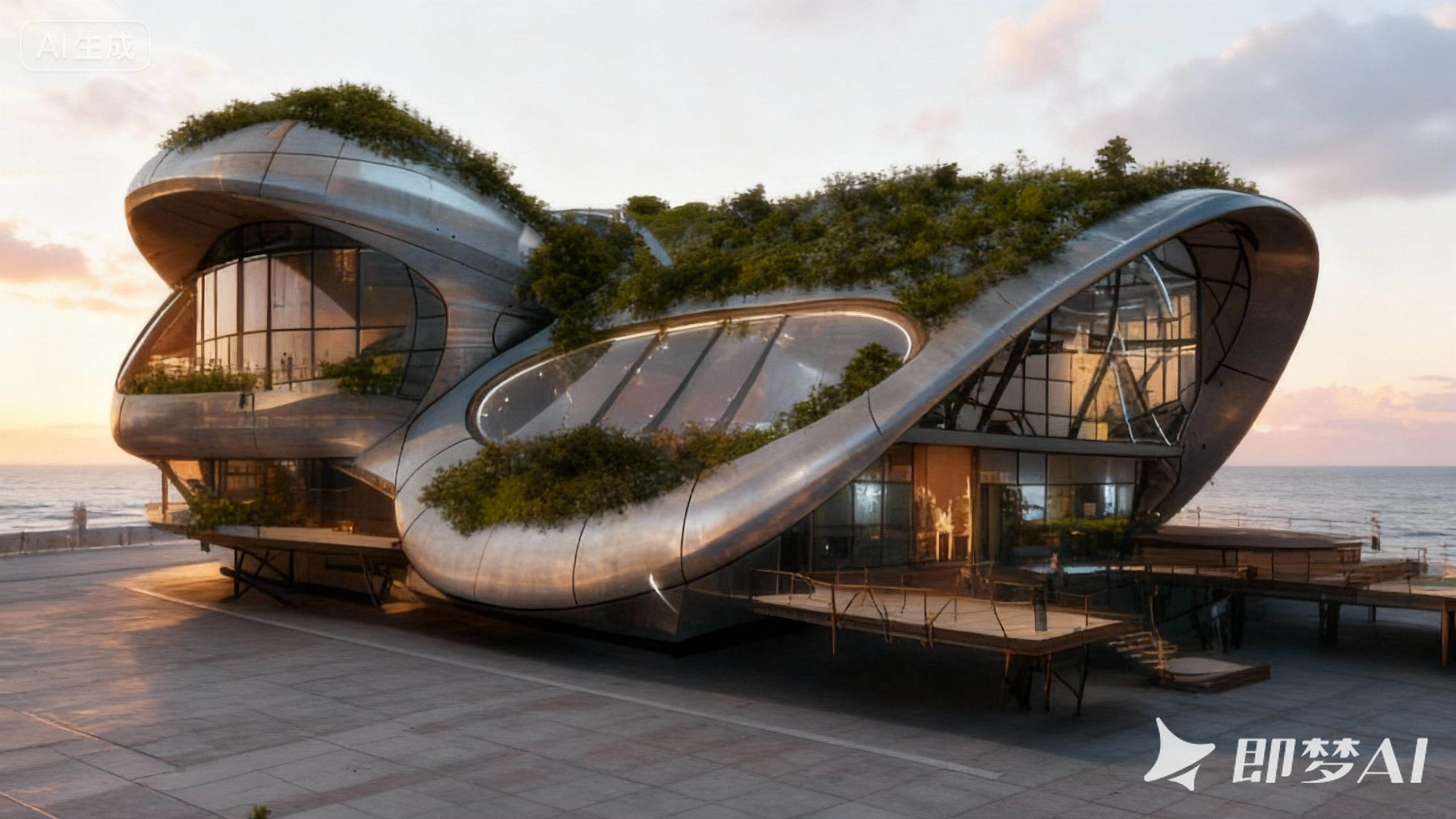 设计元素:设计上强调模块化与灵活性,如节庆广场的可变形空间。美学上追求科技感与自然风的平衡,使用流畅的线条、透明材料和智能光影,与主体建筑的海洋风格(鲸鱼形态)相呼应。